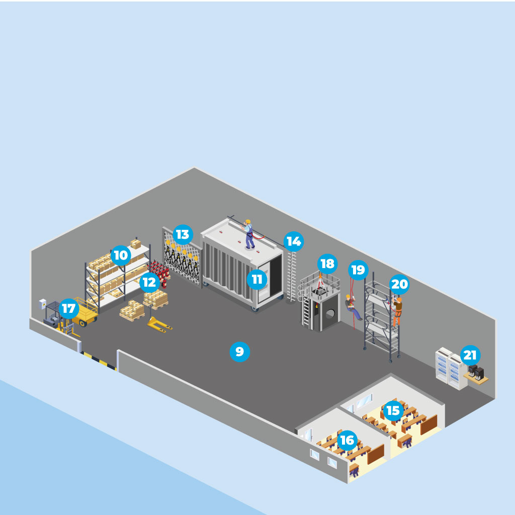 Presso questa sede mettiamo a disposizione un’aula interna ed uno spazio esterno dotato di scaffalature che servono per simulare le operazioni di carico e scarico merci.